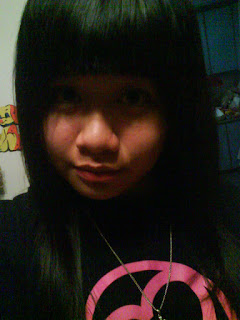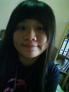 It was because one of her friend had this haircut and it looked pretty on her.On me.. ): So yalor,and i was really upset bout my ruined hair and whined to tanya,she say the hairstyle don't suit me and encourage me to try flatten it or whatsoever,but it didnt really help lor.So pro liying thought of this stupid idea of d.i.y. i'm glad i did la,my hair looked much better now,though it looks abit retarded,because it looked like bangs.you know straight cut. ._.